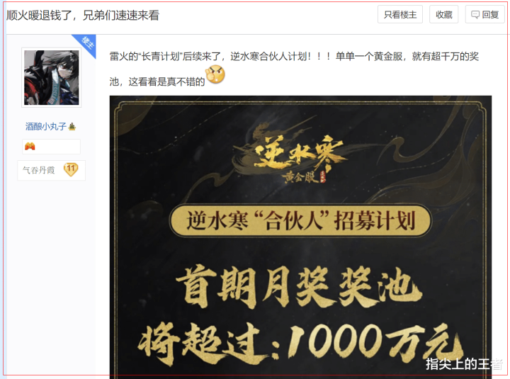 前不久,网易mmo网游《逆水寒》整了个狠活,官宣要将游戏内的所有玩家升级成“合伙人”按月领“分红”,光第一个月就要拿出1000万收益来分!