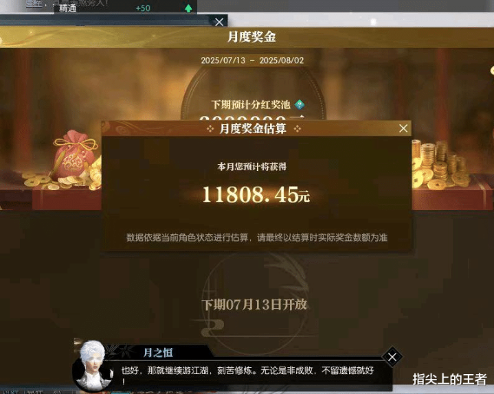 因此按照上述玩家晒出的“分红”金额,能够提现成现金的还真不是个小数目!毕竟想要从《逆水寒》中领钱,还真没有什么特殊的要求,只需每个月都在游戏里正常玩就行,多多参与各类游戏内的玩法活动,再加上玩家自身角色战力、天工值、外观(惊鸿华韵)综合结算。